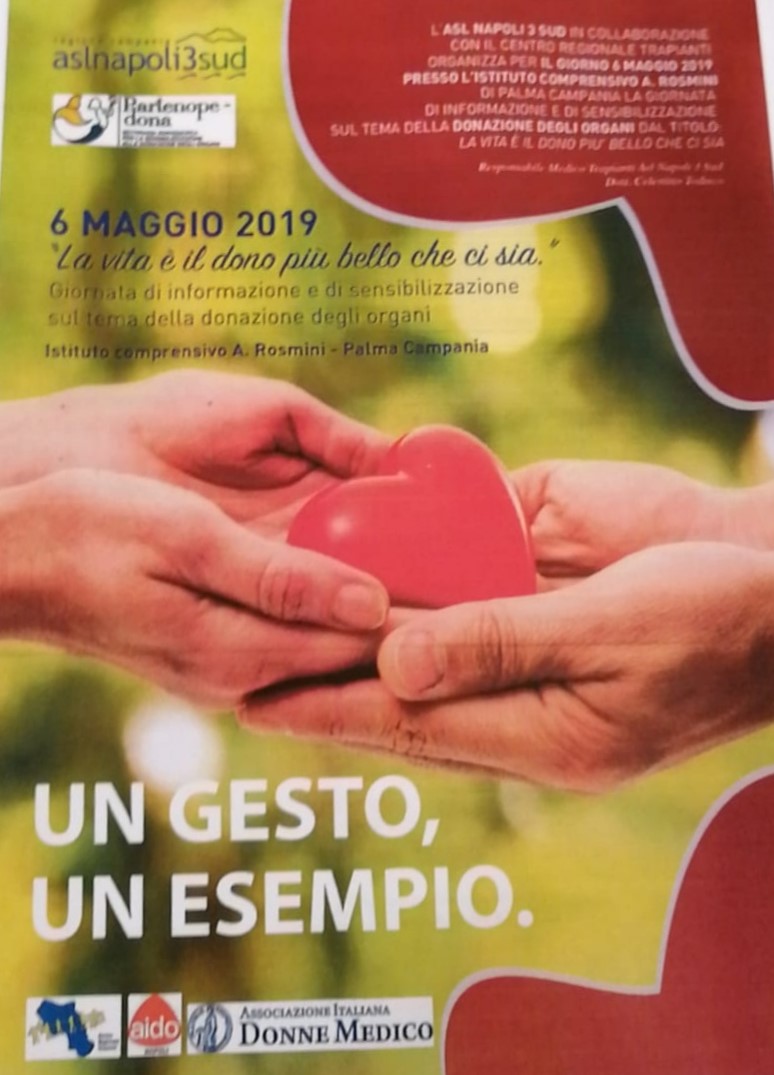 Un gesto un esempio By admin Posted 03/05/2019 In 0 Dettaglio eventi Data: 06/05/2019 Luogo: palma campania Categorie: EVENTI, Formazione, Partenope dona Recent Posts8° CORSO TPM CAMPANIA per coordinantori alla donazione ed al prelievo di organi e tessuti 7-9 Maggio 2024Ruolo dei regimi di condizionamento nella tossiticità del trapianto delle cellule staminaliDONAZIONE DEGLI ORGANI: MONTEFALCIONE E’ IL COMUNE PIU’ GENEROSO DELLA CAMPANIAGiornata di sensibilizzazione per la donazione di organi e tessuti (Azienda Dei Colli)